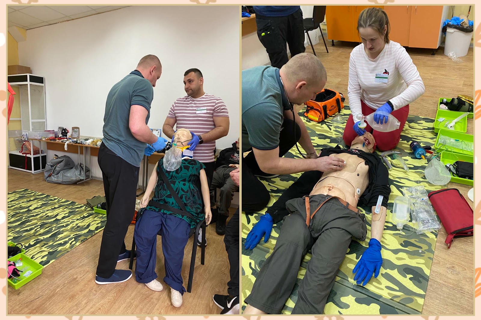 Практична частина проходила дуже цікаво, адже включала різноманітні сценарії травм: у дорослих і дітей, у людей похилого віку, у вагітних жінок та людей в стані алкогольного та наркотичного сп’яніння. Особлива увага приділялася вищепереліченим категоріям громадян, які постраждали внаслідок травми, а також роботі в команді, адже важливо, щоб дії були послідовними, кожен член бригади-команди знав, що конкретно має робити, і чітко виконував команди лідера.